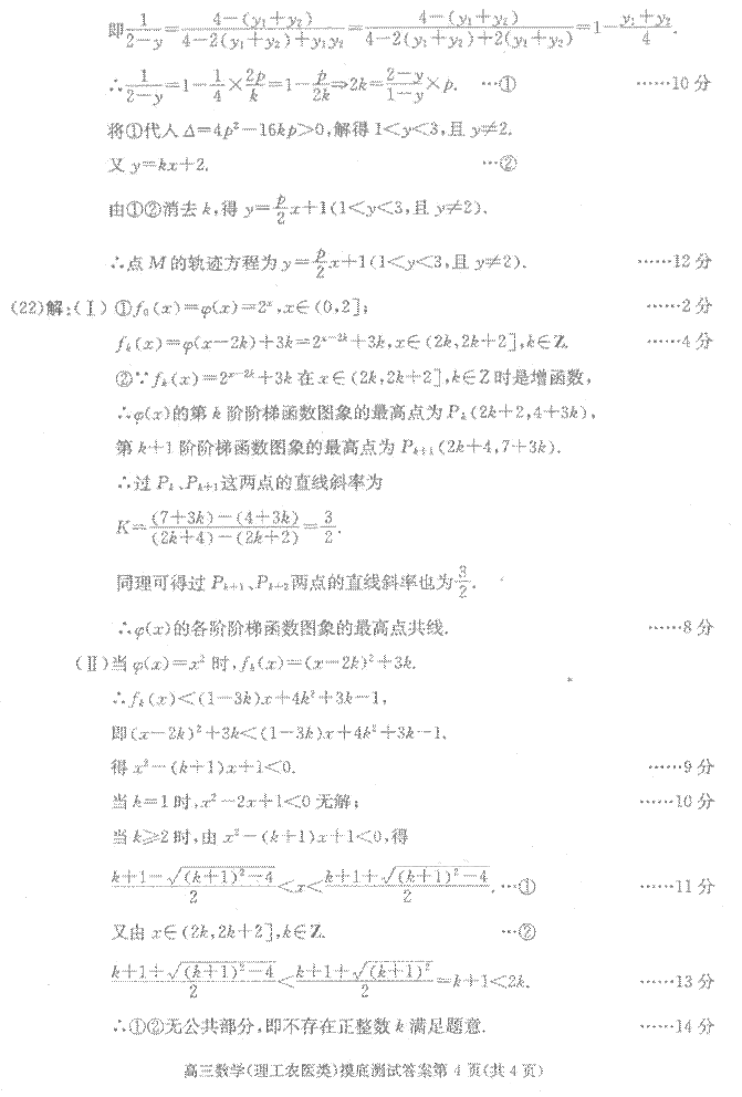 22、 (本小题满分14分) 对函数Φ(x),定义fk(x)=Φ(x-mk)+nk(其中x∈(mk,m+mk],k∈Z,m>0,n>0,且m、n为常数)为Φ(x)的第k阶阶梯函数,m叫做阶宽,n叫做阶高,已知阶宽为2,阶高为3. (1)当Φ(x)=2x时 ①求f0(x)和fk(x)的解析式; ②求证:Φ(x)的各阶阶梯函数图象的最高点共线; (2)若Φ(x)=x2,则是否存在正整数k,使得不等式fk(x)<(1-3k)x+4k2+3k-1有解?若存在,求出k的值;若不存在,请说明理由.