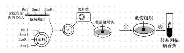 28.(9分)转基因抗病香蕉的培育过程如图所示。质粒上有PstⅠ、SmaⅠ、EcoRⅠ、ApaⅠ等四种限制酶切割位点。请回答: