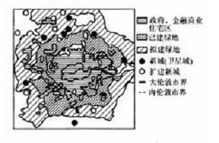 读“伦敦的城市规划和布局”示意图,回答14-15题: