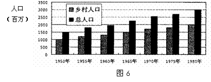 下图是某地区1950-1980年人口增长图,读图回答19-21题。