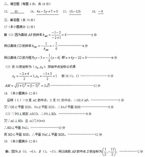 (2)当弦AB被点P平分时,l⊥PC, ………………………6分