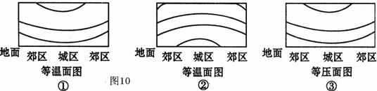 17.图10四幅图中能正确表示该城市热岛效应现象的是 ( )