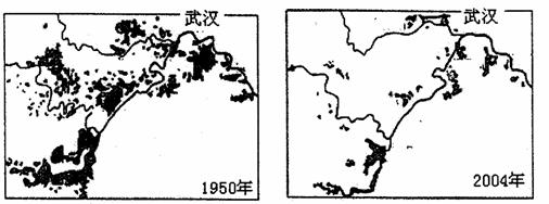 (1)简述图中长江中游湿地的变化,并分析导致其变化的人为原因。(5分)