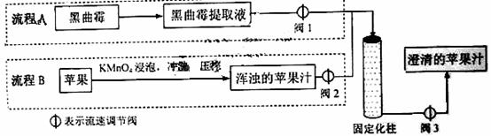 的溶液浸泡苹果的目的是_________________。黑曲霉提取液中含有的_________可水解果胶,从而使果汁澄清。固定化柱中填充的石英砂通过__________方式将酶固定化,酶被固定在用蒸馏水洗涤固定化柱是为了除去_________________。