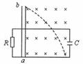 解析:(1)由ab棒以a为轴旋转到b端脱离导轨的过程中,产生的感应电动势一直增大,对C不断充电,同时又与R构成闭合回路。ab产生感应电动势的平均值
