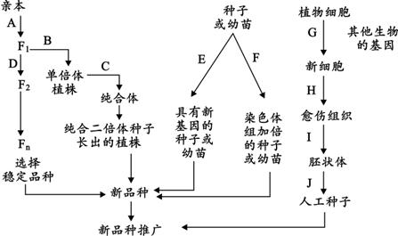 (2)C、F方法用的是同一种药剂,其作用原理是 ,导致染色体不能移向细胞两极,从而引起细胞内染色体数目加倍。