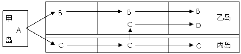 (2)迁移到乙岛上的C物种不与B物种进化为同一物种,而进化为D物种的原因是