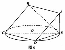 如图6,正方形ABCD所在平面与圆O所在平面相交于CD,线段CD为圆O的弦,AE垂直于圆O所在平面,垂足E是圆O上异于C、D的点,AE=3,圆O的直径为9.