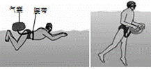 如图所示为一种被称作“跟屁虫”的辅助装备,是游泳安全的保护神.“跟屁虫”由一个气囊和腰带组成,两者之间由一根线连接.正常游泳时,连接线是松驰的,气囊漂浮着,跟人如影相随.在体力不支等情况下,可将气囊压入水中,防止人下沉,在此情况下