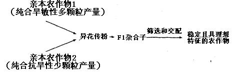 (3)为培育能稳定遗传的具抗旱性和多颗粒产量的农作物,科研人员按以下流程图进行杂交育种。(注:已知抗旱性和多颗粒属显性,各由一对等位基因控制。)