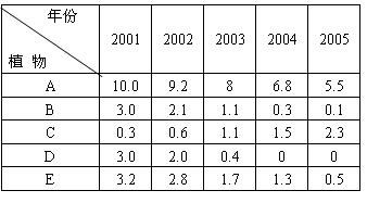 (2)在所调查的A-E五种植物中,如下图所示,你认为入侵物种最可能是 。