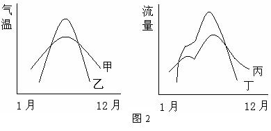 2.图中表示东北三江平原湿地被破坏后的气温年变化曲线和河流流量年变化曲线分别是