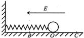 右图所示,一个由绝缘材料制成的轻弹簧水平放置,一端固定于竖直墙上,另一端与一带负电的小球相连,小球置于光滑的绝缘水平面上。当整个装置处于水平向左的匀强电场中时,振子在