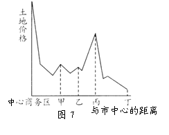 图4为某城市地价由市中心向郊区变化示意图。读图完成10-11题。