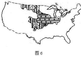 图6为“美国本土某农业地域类型的分布示意图”。有关该农业地域类型的叙述,正确的是