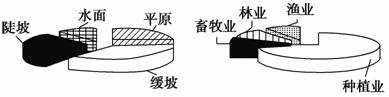 下图为“我国江南丘陵某地地形结构和农业用地结构的饼状图”。对比分析回答31--33题。