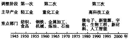 下图是“二战”以后日本工业结构的调整示意图,读图完成52--53题。