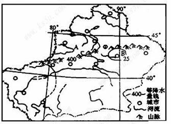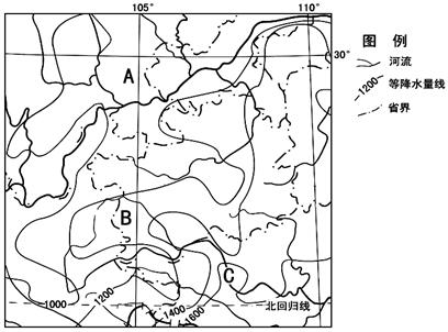 (6)图中A地年降水量比B地 ,说明造成两地降水差异的原因有哪些?(9分)
