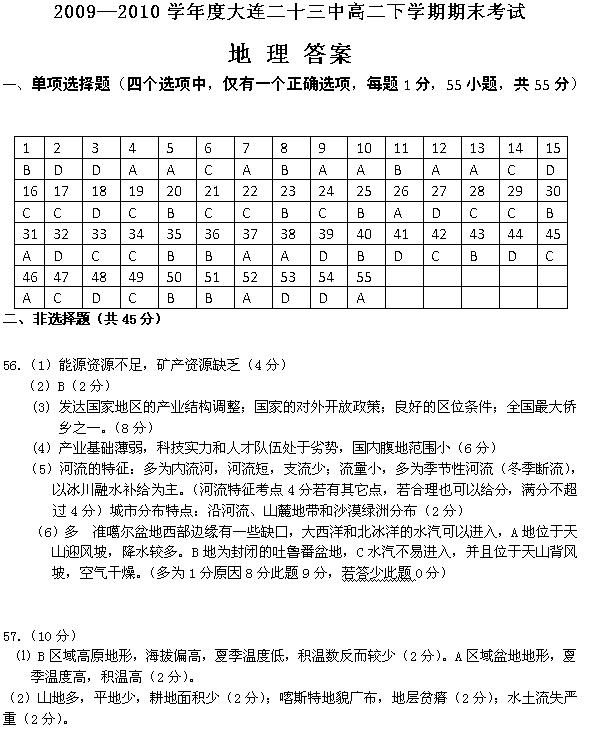 (2)与东北地区相比B的粮食生产发展落后分析B区土地利用中主要的不利因素(6分)。
