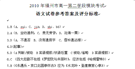 9.D(“于是”/“才”。 A在。 B连词,表目的/介词“把”。C结构助词“的”/动词“到”。)