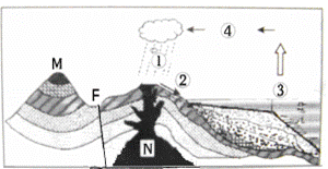 . M的形成于②无关 D.图示地区地质作用目前以内力作用为主