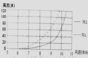 作为一种洁净能源,风能的开发越来越受到人们的关注。读陆地与海上风速剖面比较图回答7-9题