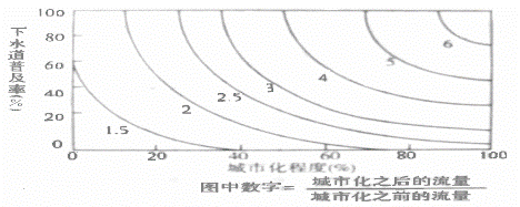 A.城市下水道普及率越高,产生径流越少 B.城市化水平越高,产生径流越少