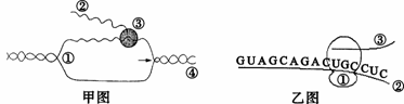 (5分)下面两个图表示两个生理过程。其中乙图中的③代表多肽。请据图回答下列问题: