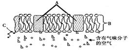 2004年诺贝尔生理学或医学奖,授予美国科学家理查德·阿克塞尔和琳达·巴克,以表彰两人在气味受体和嗅觉系统组织方式研究中做出的贡献。下图为嗅觉受体细胞膜的模式图,下列有关对该图描述中不正确的是( )