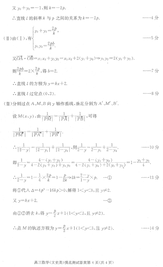 (3)设(1)中的定点为P,若点M在射线PA上,满足