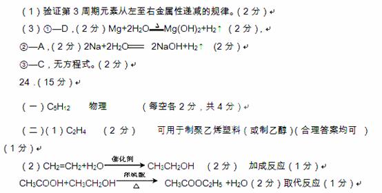 (1)无水硫酸铜 无水硫酸铜变蓝 ; (每空2分,共4分)