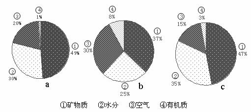 C.c土壤可掺加熟石灰中合酸性 D.三种土壤中,c的透气性好