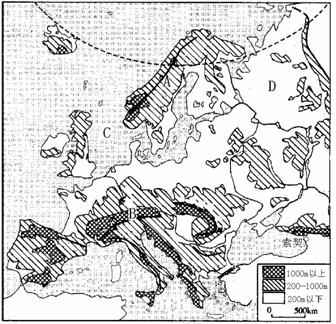 (4)图中D所在国家东部自南向北有注入北冰洋的三条大河,试分析这三条河流下游农业不发达的自然原因。(6分)