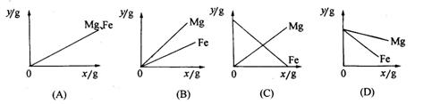 19、下图横坐标x表示 Mg、Fe 的质量,纵坐标y表示生成 H2 的质量,能代表等质量的Mg、Fe 分别与足量的盐酸反应的图像是( )