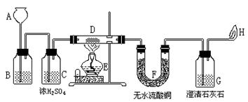 (1)C瓶中浓H2SO4的作用是_________,F中无水硫酸铜的作用是__________若F中无现象,G中产生白色浑浊,H处导出的气体不可燃。则B中发生反应的化学方程式
