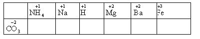 (1)大理石______________,(2)煤气____________,(3)烧碱_______________,(4)生石灰_______________,(5)金刚石_______________。 18. 实验室制取二氧化碳常用_______________为原料。其反应的化学方程式为______________ _。 19. 一氧化碳的化学性质主要有(1)______________,(2)____________,在一氧化碳还原氧化铜的实验里,应先通____________________(填化学式),后加热____________(填物质名称)。其现象是_______________ 。20. 一氧化碳中毒是由于一氧化碳吸进肺里跟血液里的_____________结合,使血液里的这种物质不能很好地跟_______________结合,致使人体缺_______________。 21. 要使二氧化碳和一氧化碳中含有相同质量的氧元素,则二氧化碳和一氧化碳的质量比 是 22. 在下表空格里写出相应的化学式。
