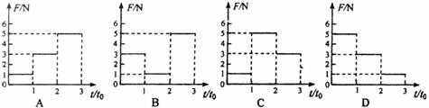 16.质量为1kg的物体静止在水平面上,物体与水平面之间的动摩擦因数为0.2。对物体施加一个大小变化、方向不变的水平拉力F,使物体在水平面上运动了3t0的时间。为使物体在3t0时间内发生的位移最大,力F随时间的变化情况应该为下面四个图中的