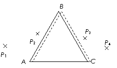 P1像和P2像,当P1的像被恰好被P2像挡住时,插上大头针P3和P4,使P3挡住P1、P2的像,P4挡住P3和P1、P2的像.在纸上标出的大头针位置和三棱镜轮廓如图所示。