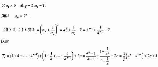 (2)由(1)中求得数列通项公式,可求出bn的通项公式,由其通项公式化可知其和可分成两个等比数列分别求和即可求得。
