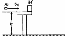 (12分)如图所示,一质量为M的物块静止在桌面边缘,桌面离水平地面的高度为h。一质量为m的子弹以水平速度v0射入物块后,以水平速度v0/2射出。重力加速度为g。求