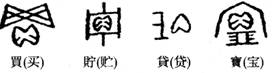 3.在殷墟贵族墓葬中发现了许多随葬的贝壳,甲旨文中也有如下图所示的带“贝”的文字。这说明 ( )