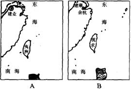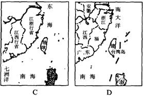 7.下面四幅我国东南沿海的历史地图中,与元代台湾情况相符的是 ( )
