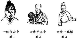 8.服饰是一个时代政治、经济和思想文化的具体体现。图1到图3是明太祖命制并颁行全国的三种男子帽式,你从中得到的确切信息是 ( )