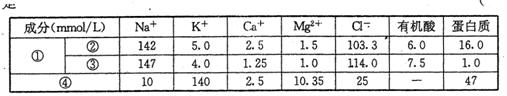 40.下表表示人体细胞外液和细胞内液的物质组成和含量的测定数据,相关叙述不正确的是