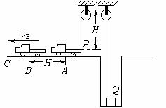 [例5]一辆车通过一根跨过定滑轮的绳PQ提升井中质量为m的物体,如图所示.绳的P端拴在车后的挂钩上,Q端拴在物体上.设绳的总长不变,绳的质量、定滑轮的质量和尺寸、滑轮上的摩擦都忽略不计.开始时,车在A点,左右两侧绳都已绷紧并且是竖直的,左侧绳长为H.提升时,车加速向左运动,沿水平方向从A经过B驶向C.设A到B的距离也为H,车过B点时的速度为vB.求在车由A移到B的过程中,绳Q端的拉力对物体做的功.