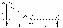 [例8] 如图所示,小滑块从斜面顶点A由静止滑至水平部分C点而停止。已知斜面高为h,滑块运动的整个水平距离为s,设转角B处无动能损失,斜面和水平部分与小滑块的动摩擦因数相同,求此动摩擦因数。