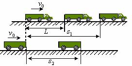 [例9]总质量为M的列车,沿水平直线轨道匀速前进,其末节车厢质量为m,中途脱节,司机发觉时,机车已行驶L的距离,于是立即关闭油门,除去牵引力。设运动的阻力与质量成正比,机车的牵引力是恒定的。当列车的两部分都停止时,它们的距离是多少?