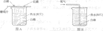 (1)用图A所示装置进行实验,观察到的现象是铜片上的白磷燃烧产生白烟:铜片上的红磷和水中的白磷不燃烧再用图B所示装置进行实验.观察到:不通氧气时,热水中的白磷不燃烧;通氧气时,热水中的白磷燃烧。根据上述实验得出,可燃物燃烧的条件是