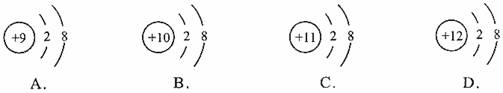 3、(2009南京)10.下列粒子结构示意图中,表示原子的是( )