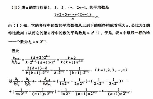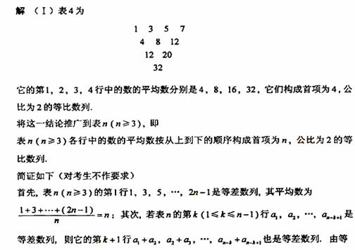 (I)写出表4,验证表4各行中数的平均数按从上到下的顺序构成等比数列,并将结论推广到表n(n≥3)(不要求证明);